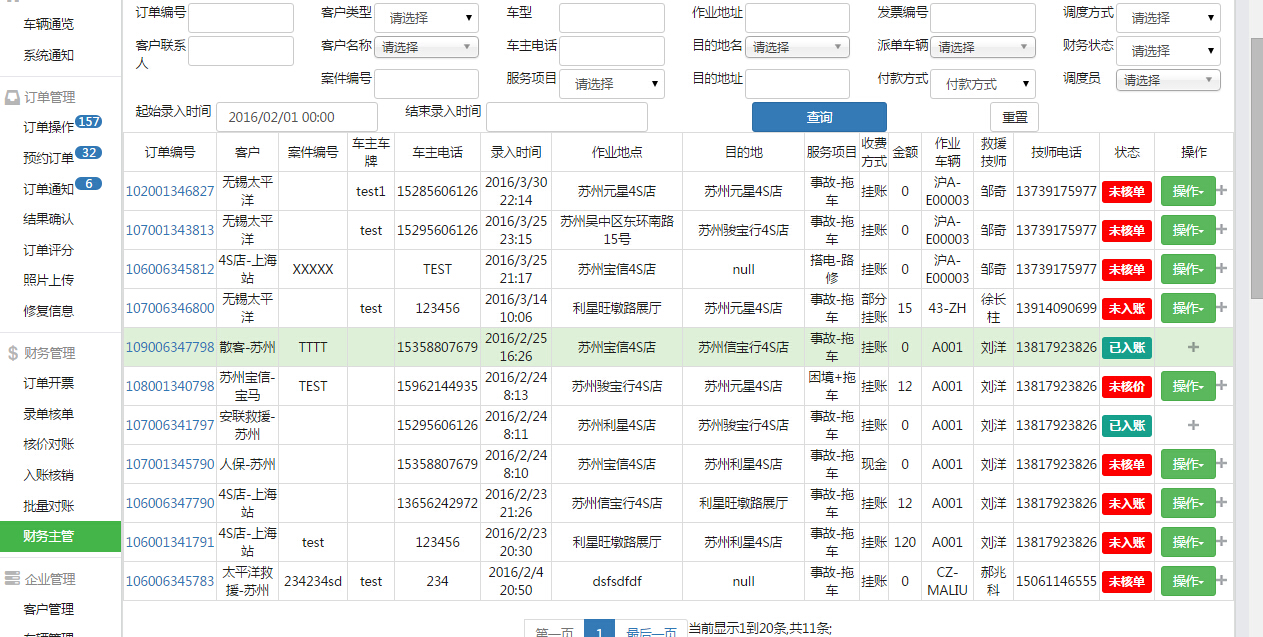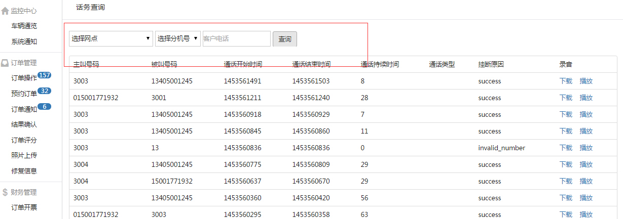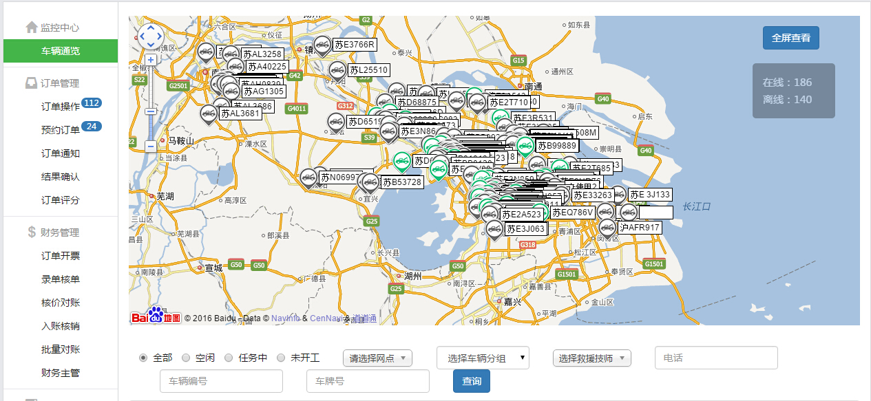 主要作用是用于普通订单和已派遣的预约订单当前的状况,用于管理订单调派和监控订单实时状况; 可根据不同的信息去查询相应的结果; |