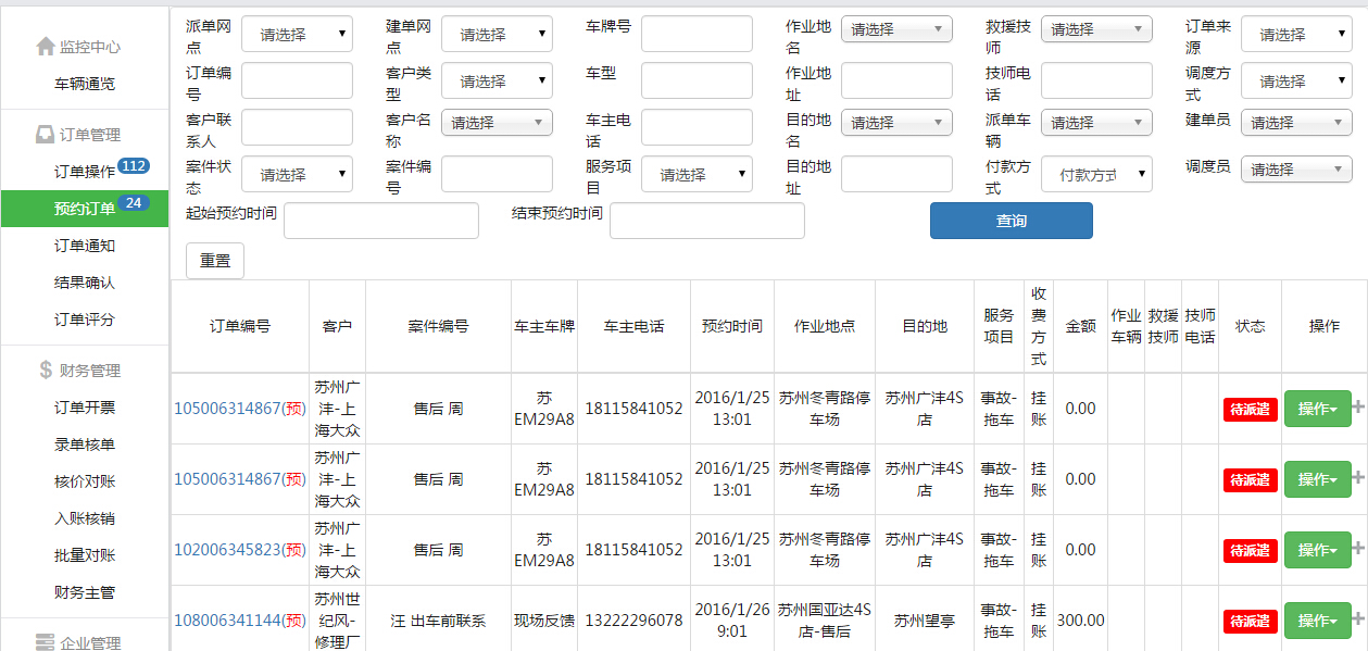 | 主要作用是用于未派遣的预约订单管理,可根据不同的信息去查询相应的结果; |