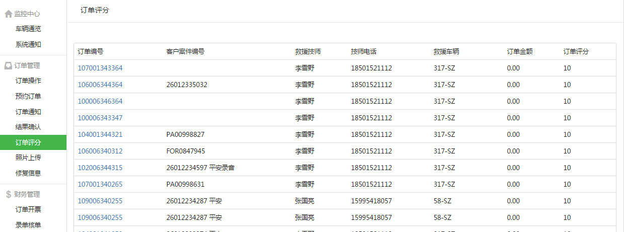 | 主要作用是查看订单完成后客户对该处理的评分 |