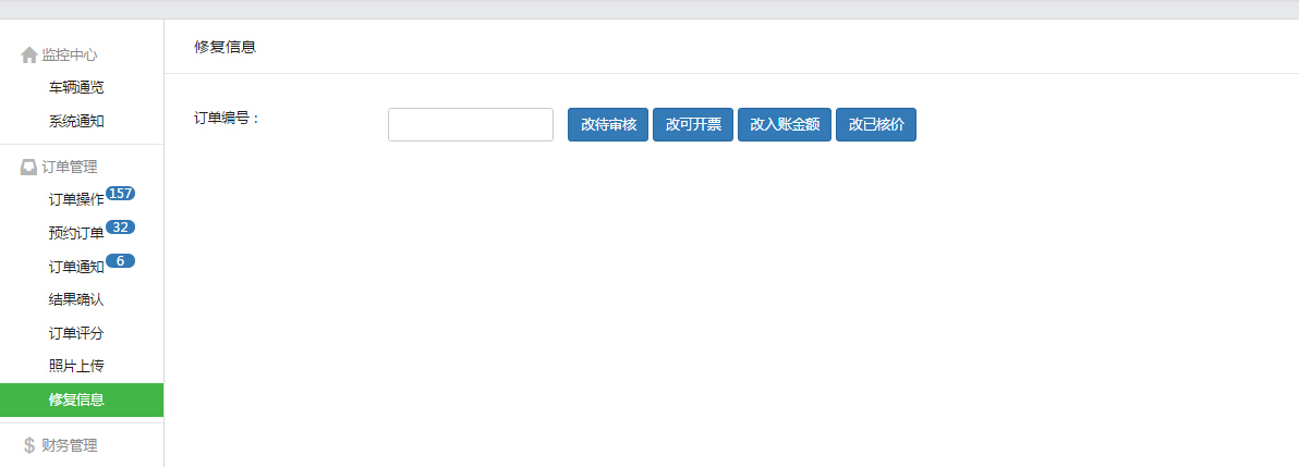 | 主要用于员工对订单误操作导致数据不正确,可修复常见的数据操作错误 |